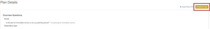 On plans with a submitted status, an option is also available on the plan details page to promote the plan to a case.