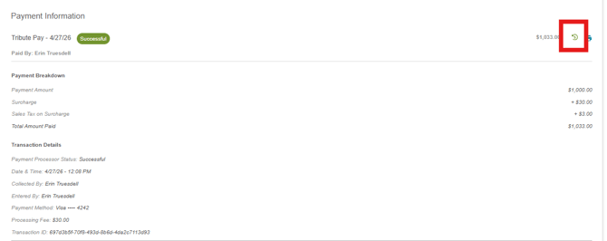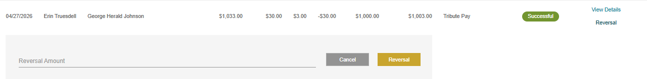 A Tribute Pay transaction reversal can be processed from two places in your TMS system: