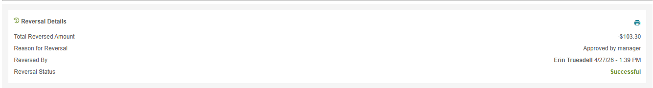 A record of the reversal can also be printed using the printer icon.