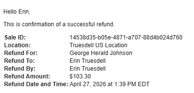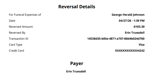 If the payor has an email attached to their contact card, a confirmation of reversal will be automatically emailed to them.