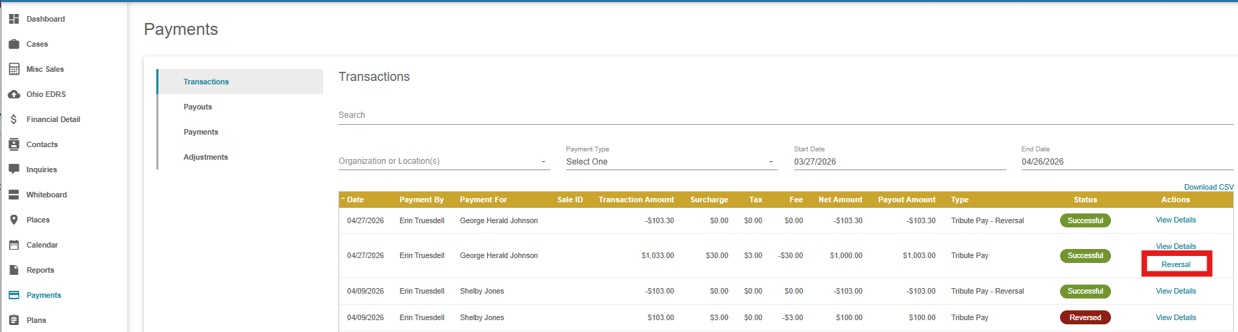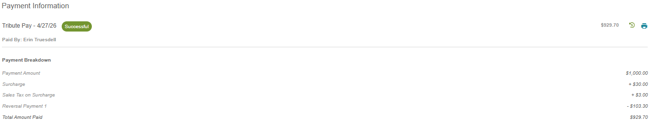 Processing a Tribute Pay Reversal on the Payments Log
