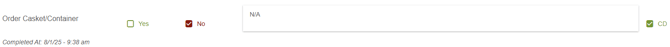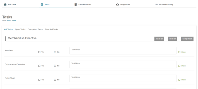 If a task is not applicable on the case, the no checkmark can be used and a note can be added to indicate N/A.